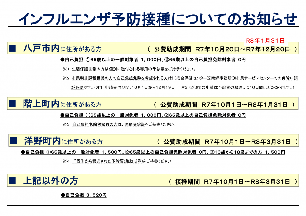 各地域に住所がある方は、それぞれに記載されている公費助成期間・自己負担・※1~4の注意事項を
