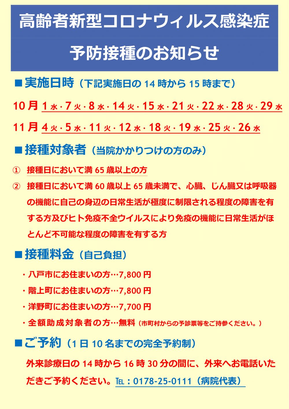 上記の実施日時・接種対象者・接種料金・ご予約のお電話の時間帯をご確認の上ご連絡ください。