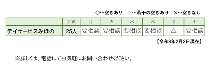 デイサービスみほのは、「信頼と笑顔 あなたに寄り添う介護」を基本理念としたデイサービスです。